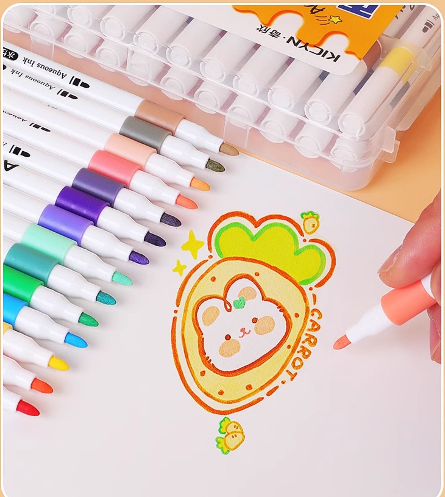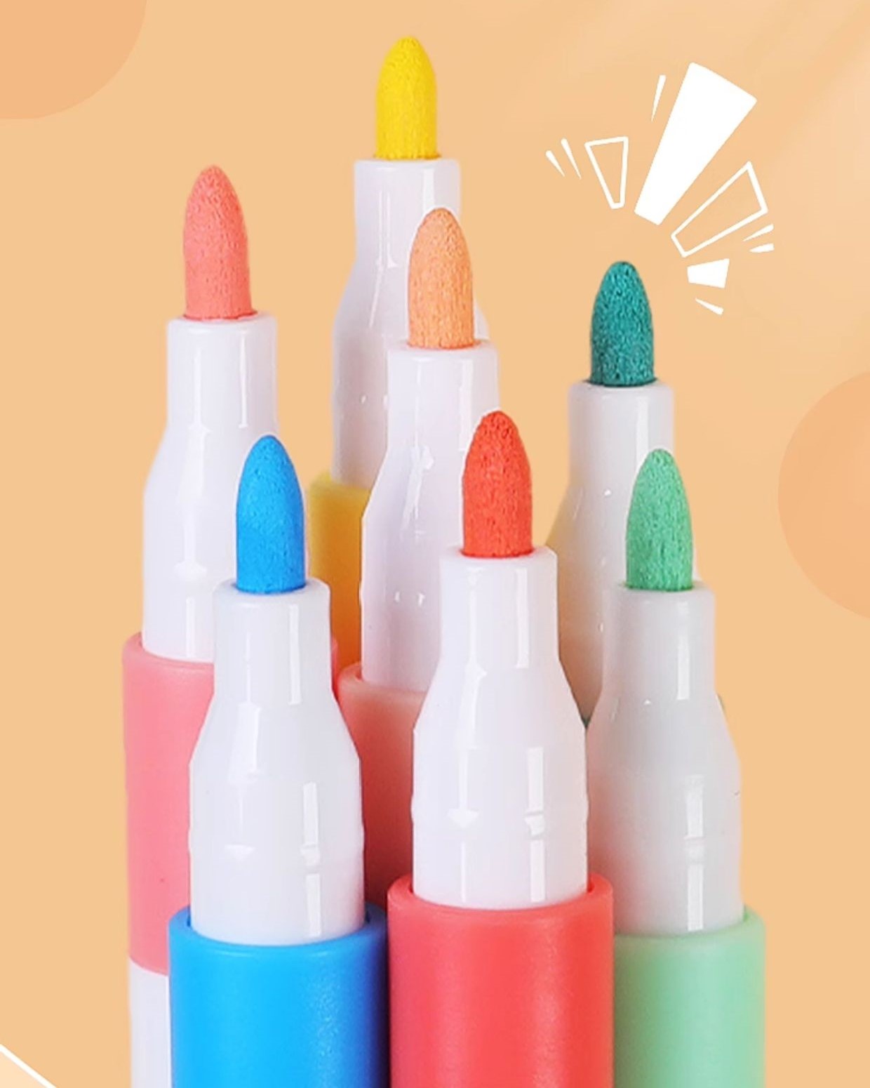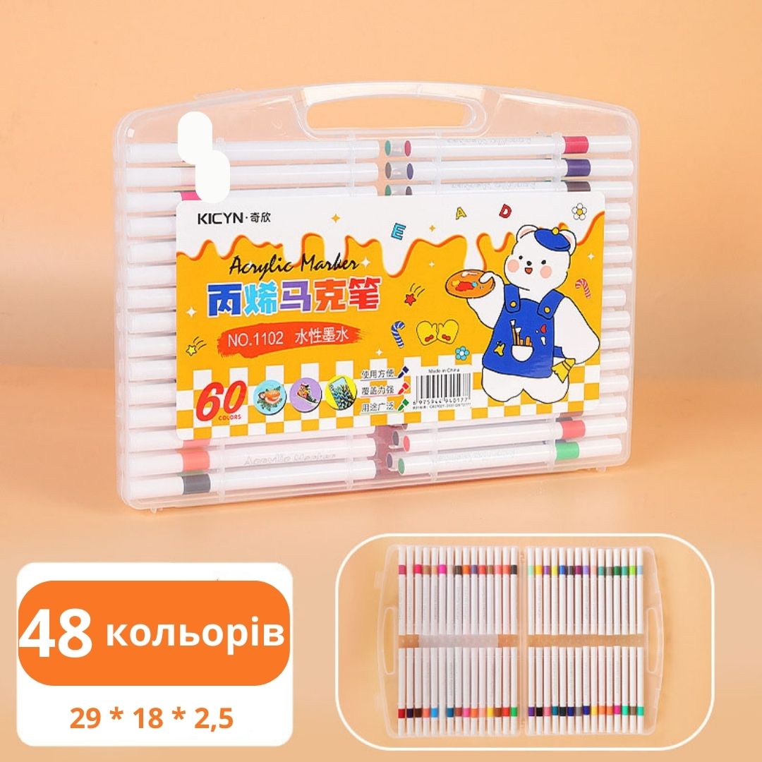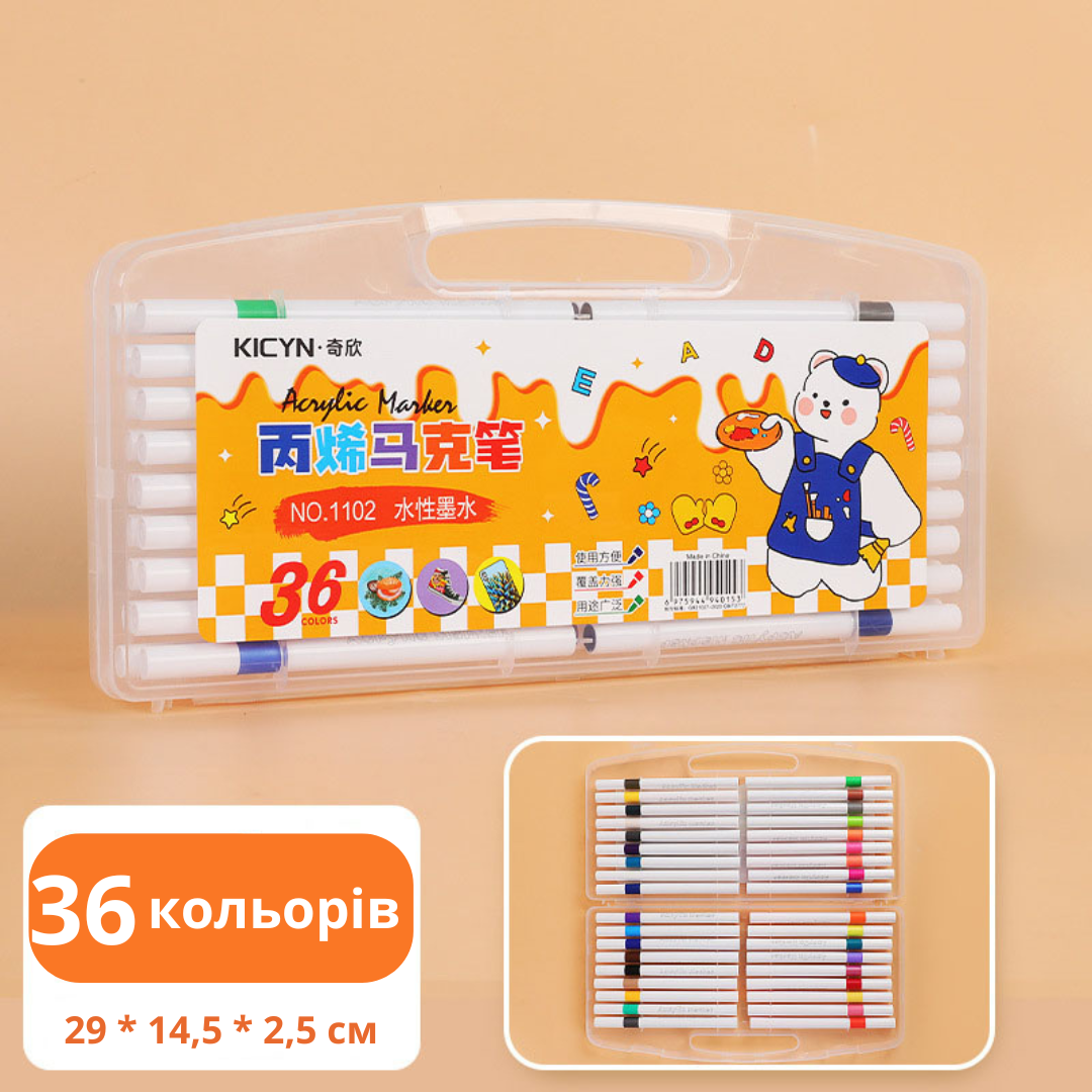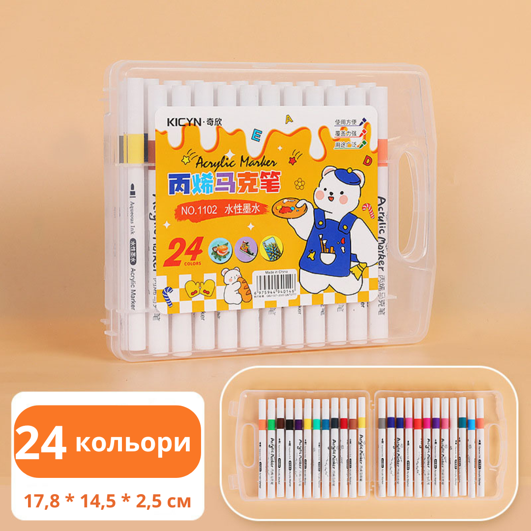 Фломастери з акриловими чорнилами створюють інтенсивне, стійке покриття, яке добре видно навіть на темних та текстурних поверхнях. Кольори не тьмяніють з часом і залишаються виразними.